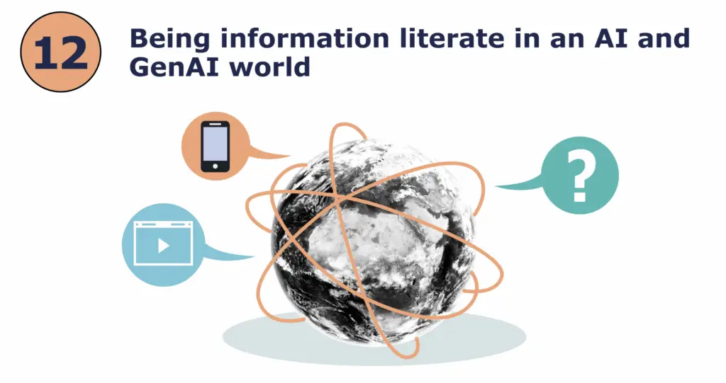 1. Introducing information literacy 2. Information sources and resources 3. Libraries and portals 4. The search query 5. Searching the web 6. Searching databases and online journals 7. Organising and retrieving information on your computer 8. Ethics and fair use 9. Referencing 10. Evaluating information sources 11. Information documentation and creation process 12. Being information literate in an AI and GenAI world